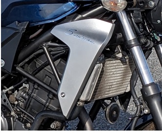 手っ取り早いのはネイキッドバイクの小外装を移植して誤魔化す事。割と規格が近いCB250Rのを流用してしまおう。
