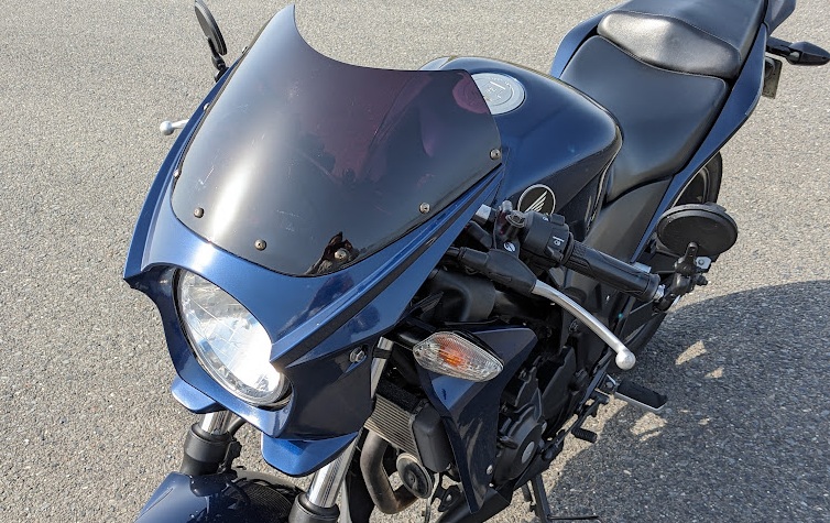 フルカウルの頃よりこちらの方がジュラルミン製のレース用ハンドルが似合ってる気がする。